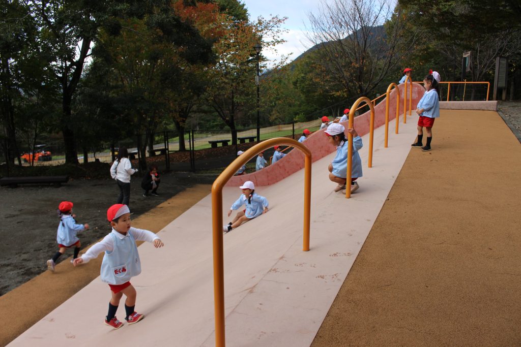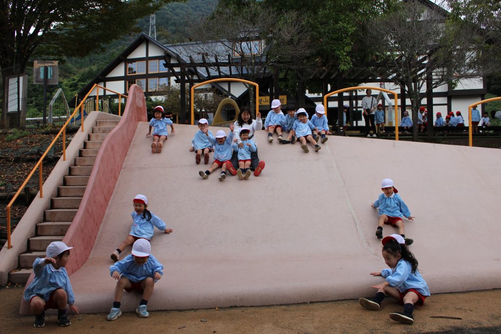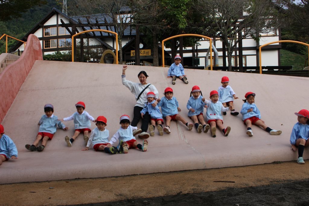 みんなで大きなすべり台を滑ってご機嫌なお友達です♪