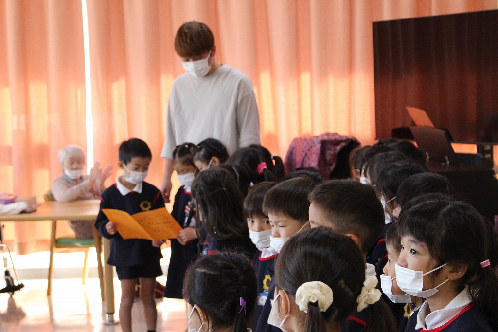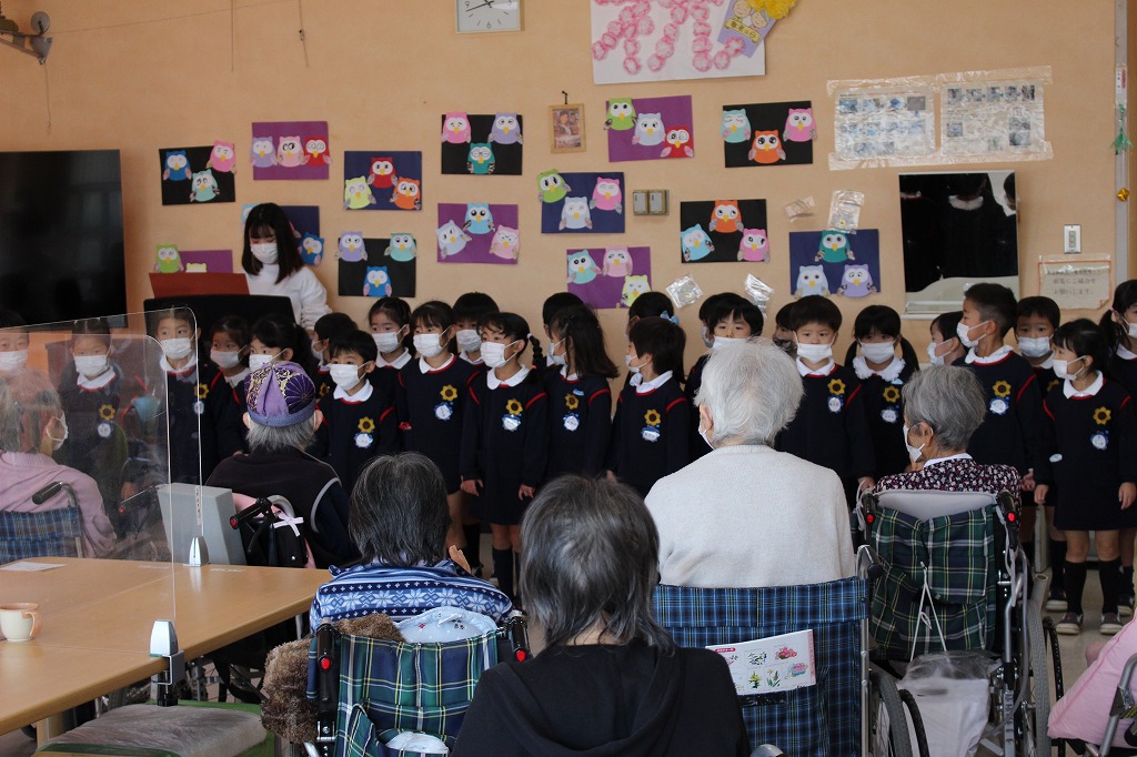 たくさんのおじいちゃんおばあちゃんにお歌を聞いてもらいました♪赤とんぼ・幸せなら手をたたこう
