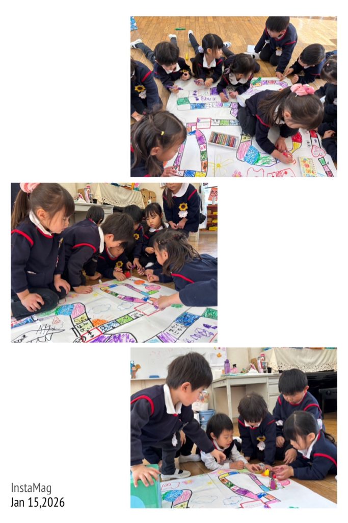 もも1くみさんは、手作りの「すごろく」で遊ぼう!!
