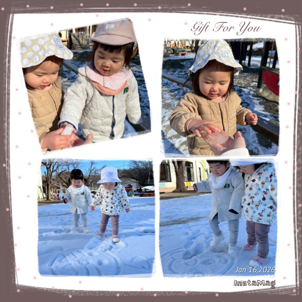 新年早々の雪が、気温の低さのために園庭にいつまでも残り・・・